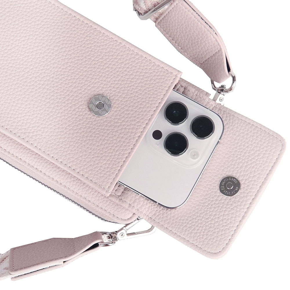 Přední část, která se uzavírá na magnetický druk, je tvořena volným prostorem na uložení mobilu (do velikosti 16,5 x 7,5 cm).