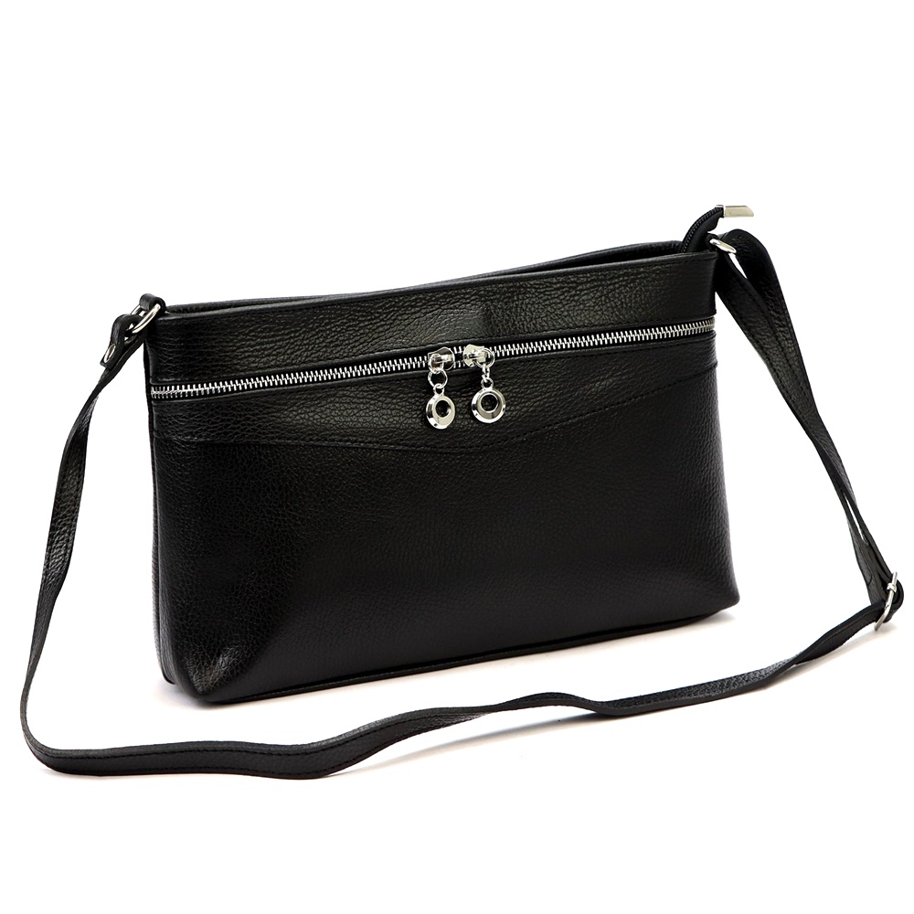 Středně velká kožená černá crossbody kabelka Luka no. 65