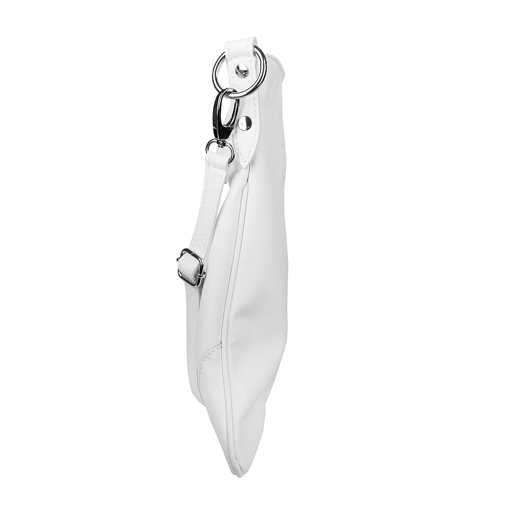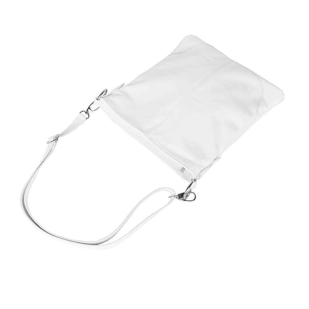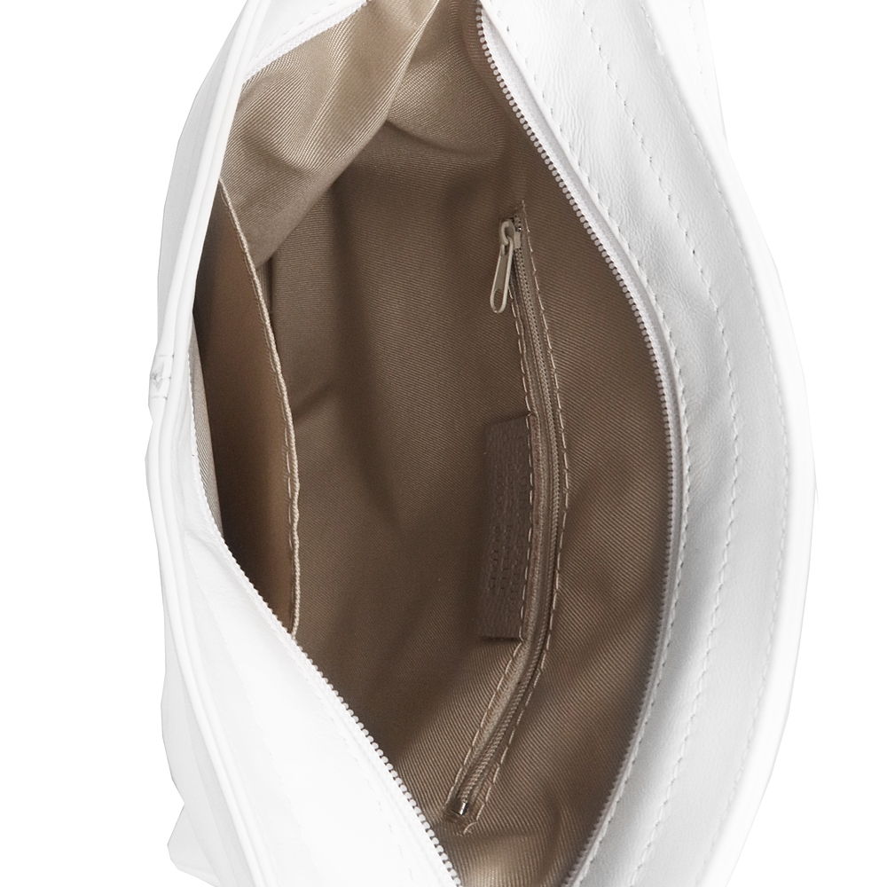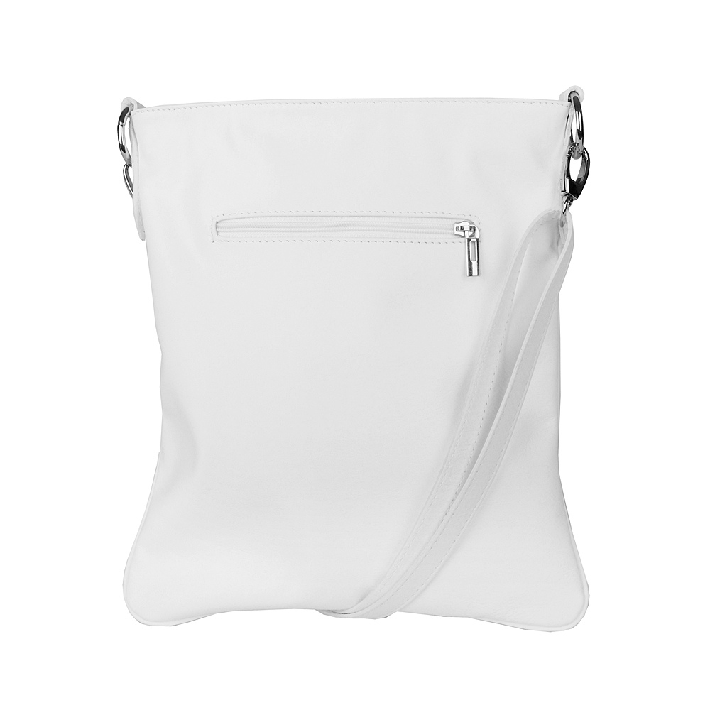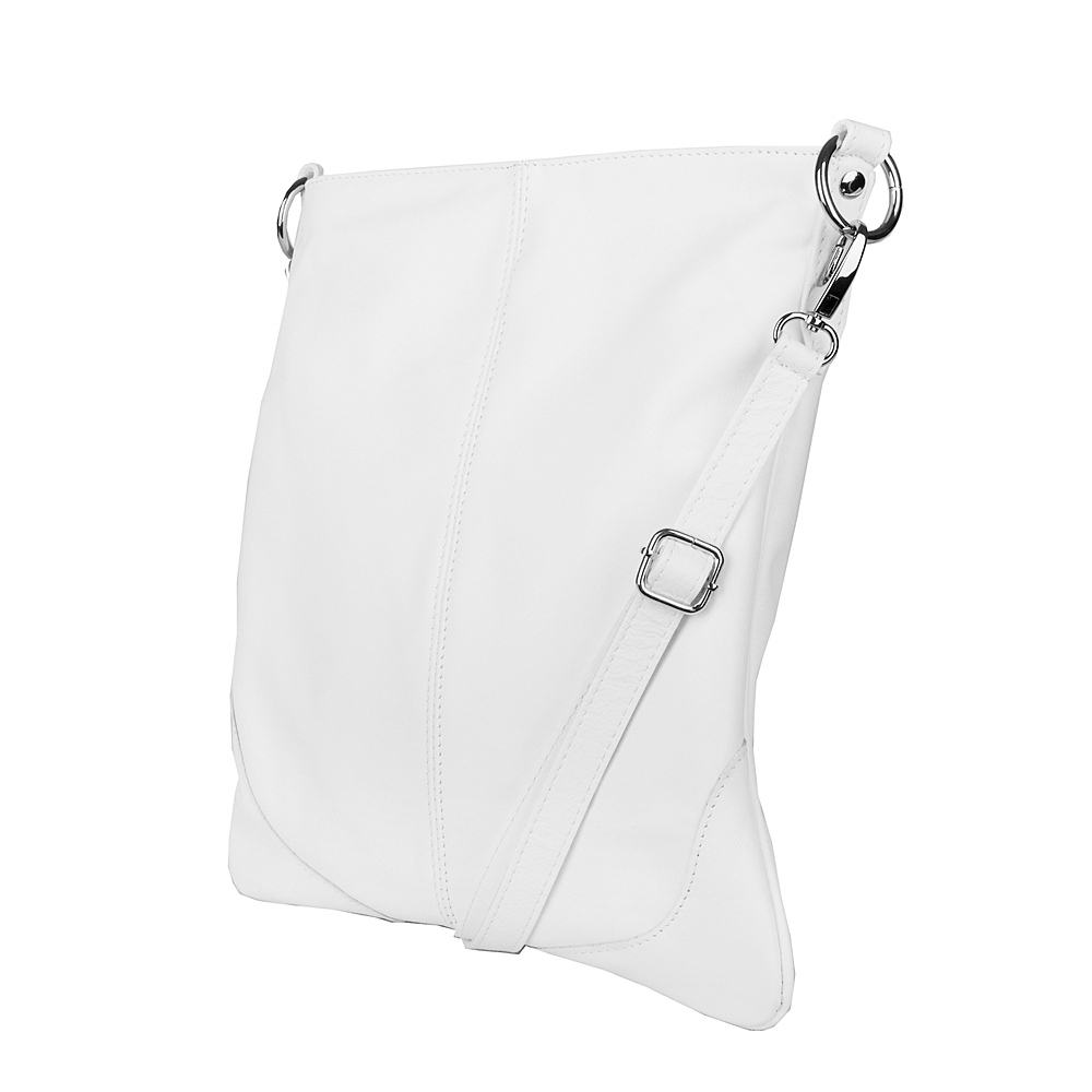 Kožená bílá dámská crossbody kabelka od výrobce Vera Pelle v jednoduchém desingu s přední stranou svisle prošitou a se zesílenými rohy.