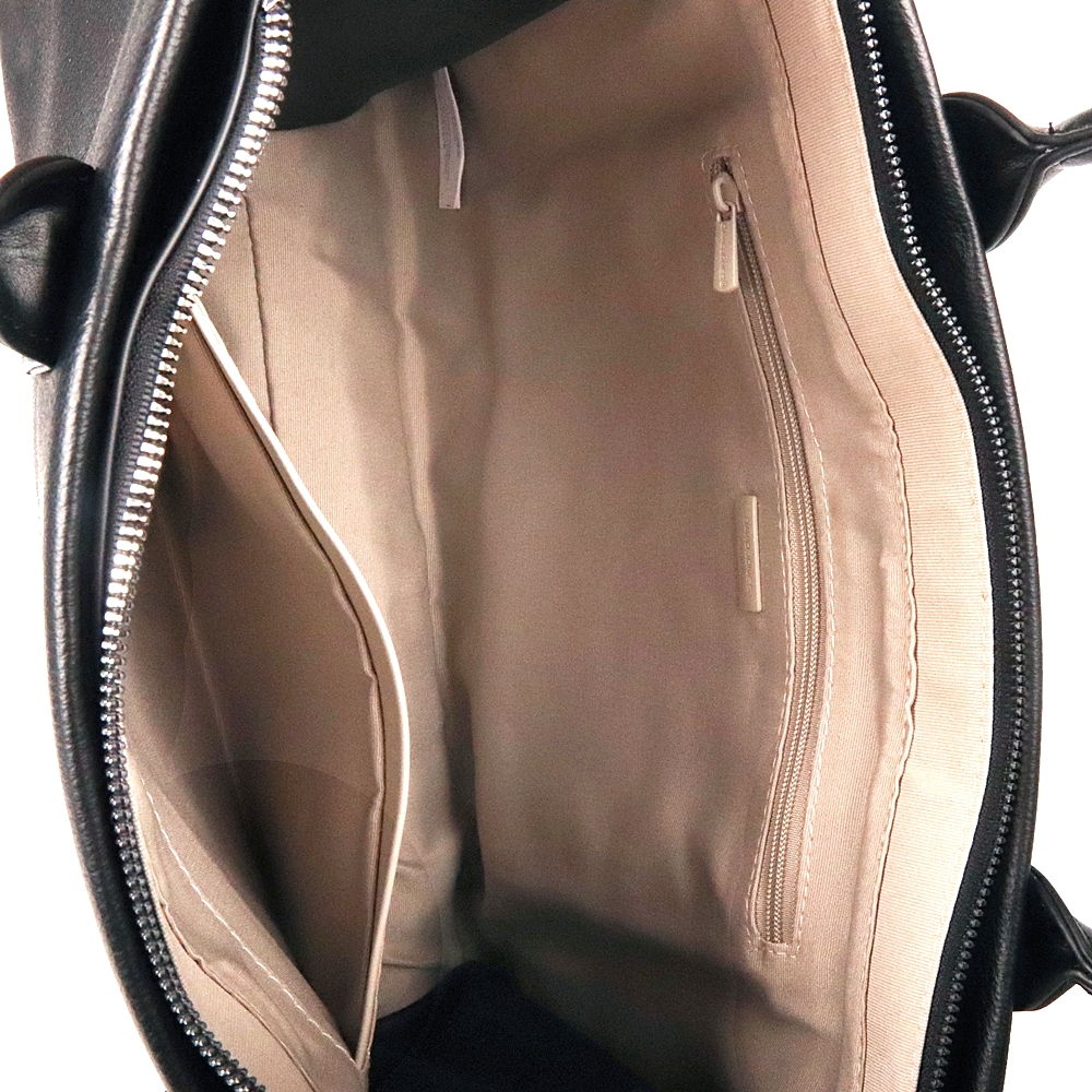 Kabelka se uzavírá na zip, vnitřní prostor je nedělený, v podšívce jedna otevřená kapsička a jedna zipová kapsa.
