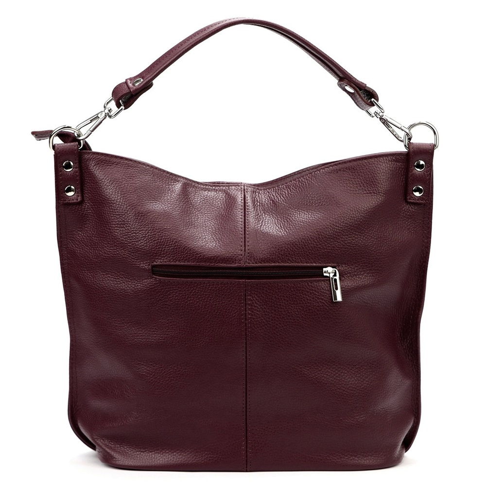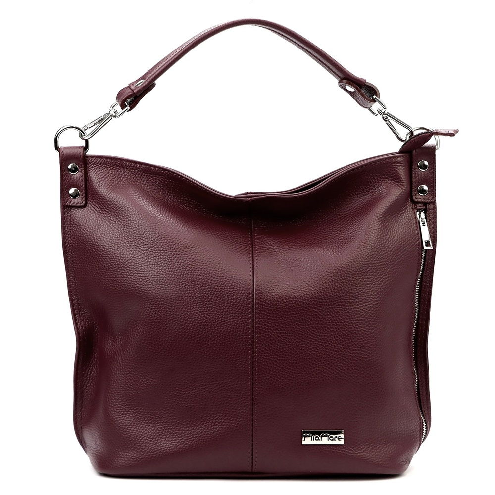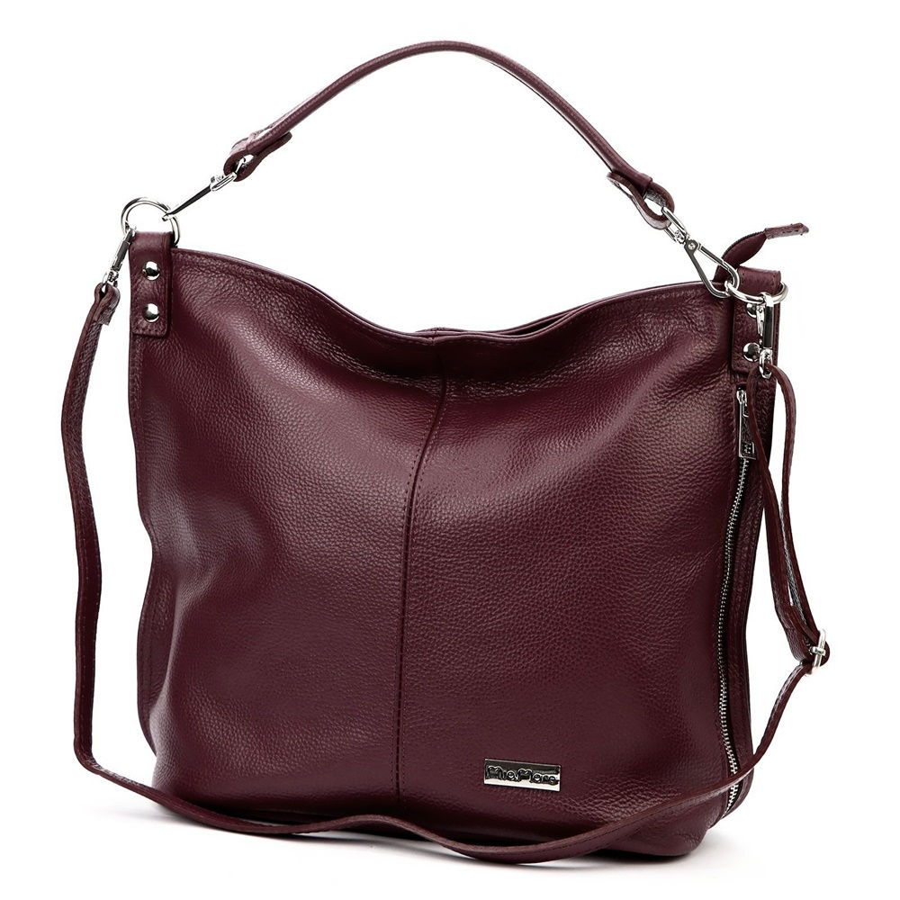 Úvod » Kožené kabelky » Manufaktury v Itálii » Velká kožená tmavá bordó kabelka na rameno i crossbody MiaMore no. 053