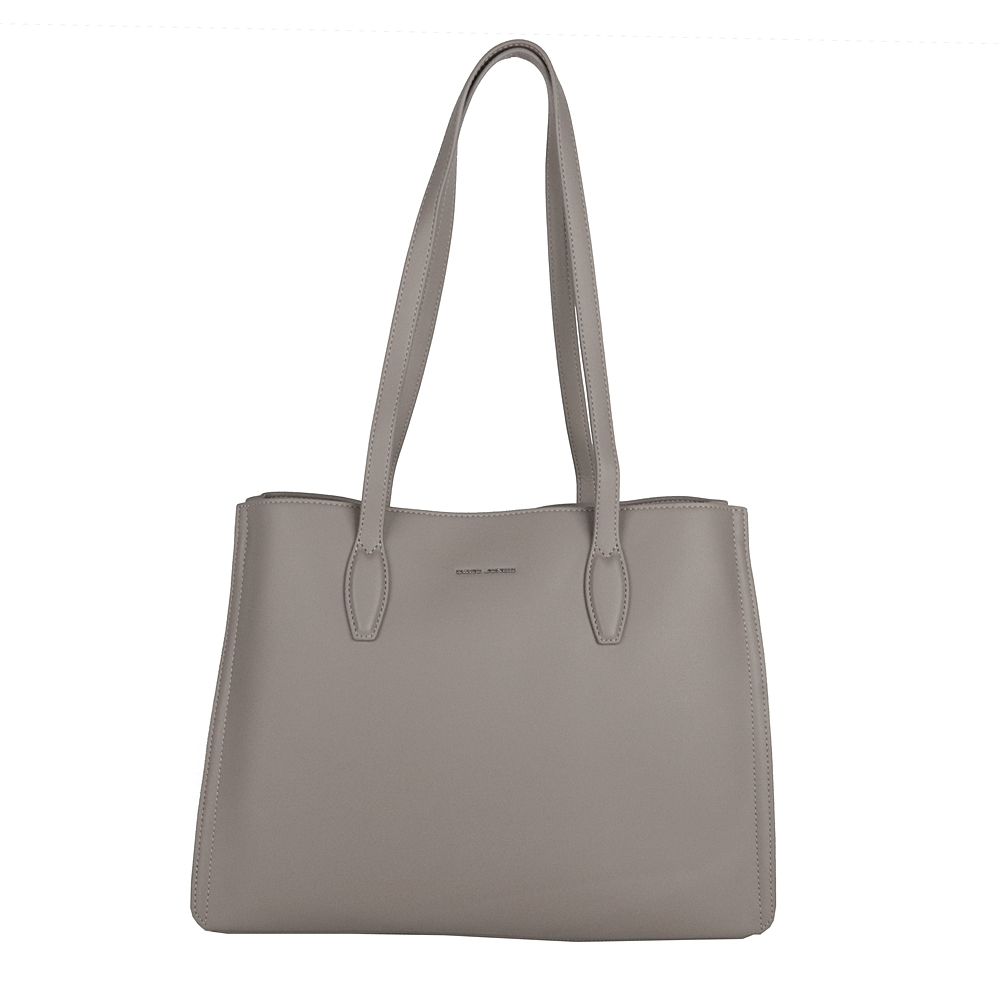 Velká a hlavně prakticky řešená hnědo-šedá (teplá taupe) kabelka na rameno David Jones z příjemné syntetické kůže.